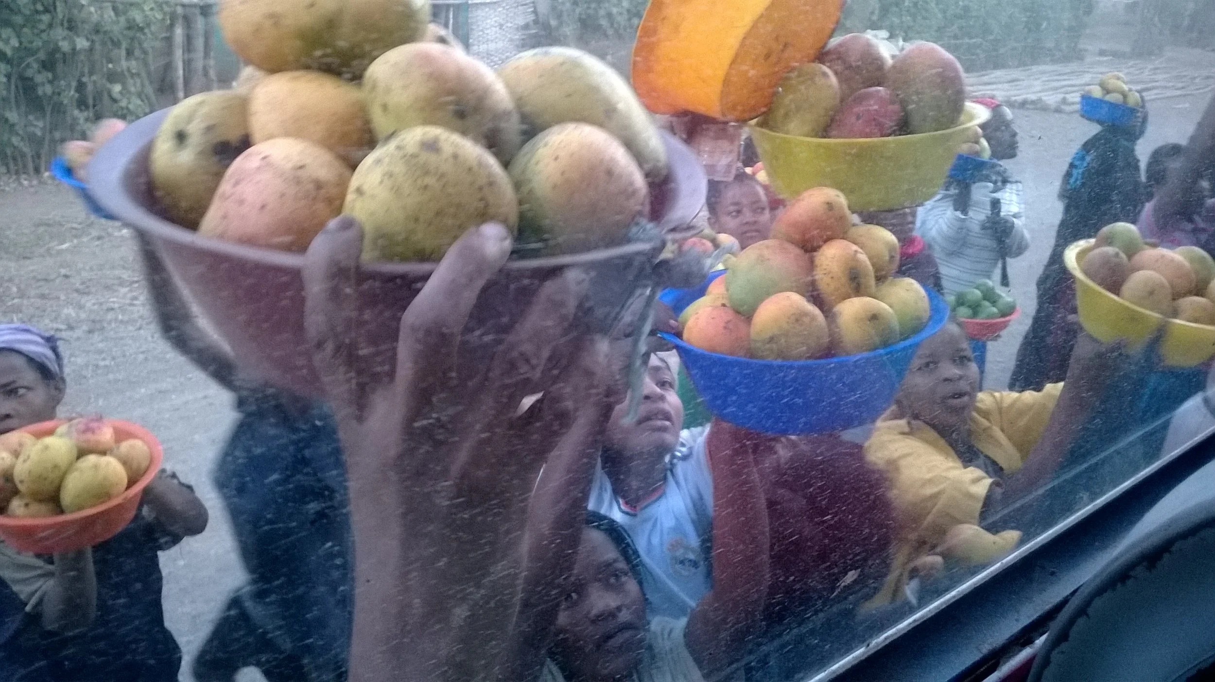 Ethiopian women trying to sell mangoes to people on my bus. The buckets of fruit cost half a dollar. Selling identical product means they have little available beyond enthusiasm to differentiate themselves in an attempt to make a sale.